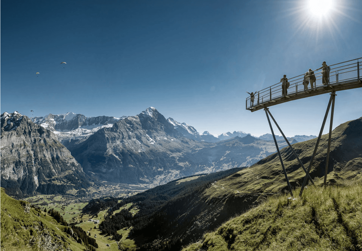 *艾格峰快線纜車 Eiger Express:2020年12月5日“艾格峰快線 Eiger Express”開通,全長將近6.5公里,共有44個可以容納26人的大型車廂。從海拔937公尺的格林德瓦站出發,搭乘纜車僅需15分鐘即可上升1391公尺到達海拔2328公尺的艾格峰冰川站,比以往全程搭乘齒軌火車大幅縮短47分鐘車程,遊客在山頂將有更多時間欣賞壯麗全景。