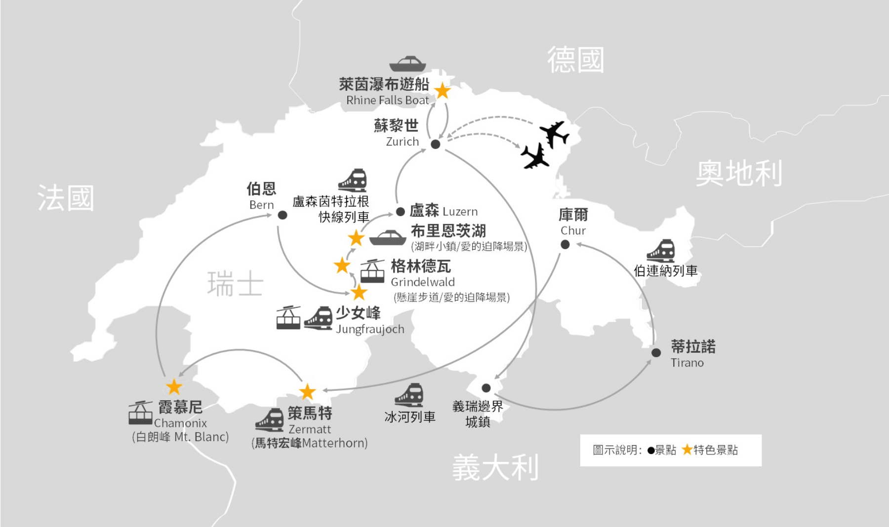 少女峰,馬特宏峰,白朗峰,黃金列車,冰河列車,伯連納列車