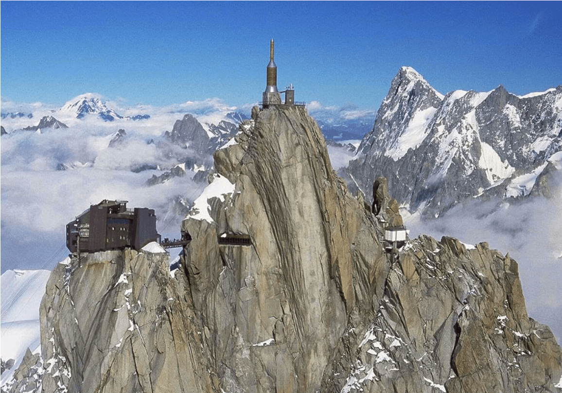 *白朗峰:搭乘纜車登上近四千公尺的南針峰觀景台,由此遠望,高聳壯麗的阿爾卑斯群峰就在眼前,白朗峰是其中最高的,此時群山不再高不可攀,似乎張開雙手就能盡情擁抱,這樣的畫面將讓您永生難忘。(如遇纜車維修或氣候因素停駛,將改安排搭乘「蒙坦威德冰河火車」欣賞冰河景觀。)