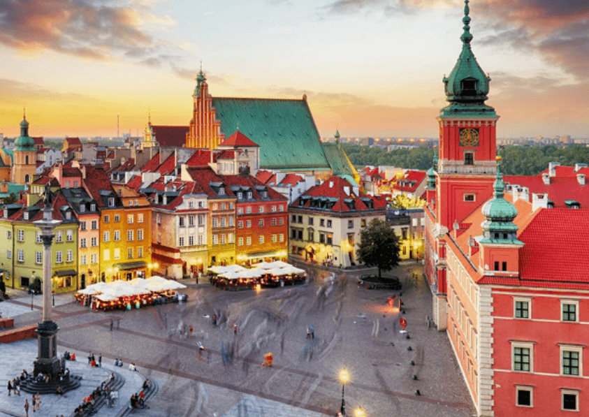 抵達後,展開華沙城市遊覽:戰後重建的舊城區 (Old Town)、皇家城堡 (Royal Castle)、市集廣場 (Market Square)、美人魚雕像 (Mermaid Statue)——華沙象徵。